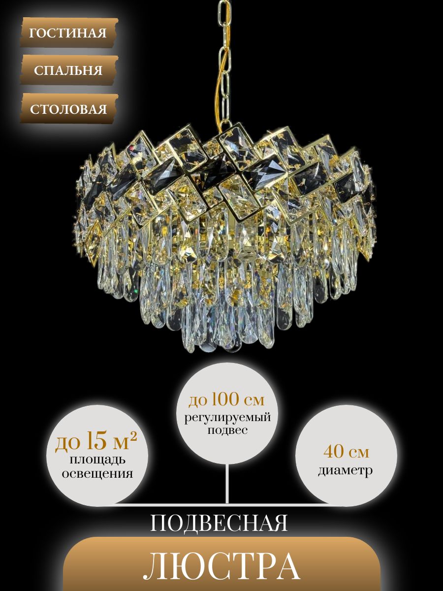 Люстра Lanbos - это современное и стильное решение для освещения различных помещений. Она выполнена в золотом цвете, что позволяет ей гармонично вписаться в любой интерьер, будь то кухня, спальня, гостиная, кабинет, кафе или офис.