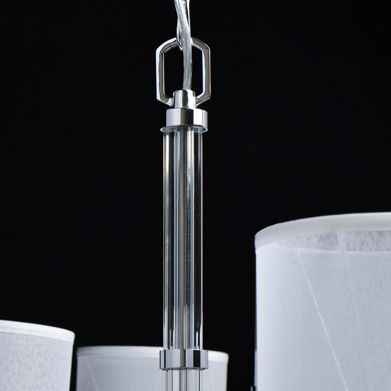 - универсальная цветовая гамма, подходящая под любой интерьер: металлическое хромированное основание эстетично сочетается с белыми полупрозрачными абажурами из ткани, бережно рассеивающими свет;