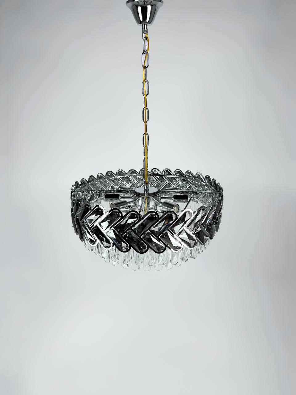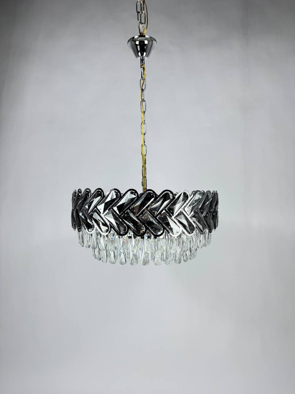 Люстра оснащается 12 лампами с цоколем Е14 и общей мощностью до 480 Вт, обеспечивая яркое и равномерное освещение на площади до 20 кв. м.