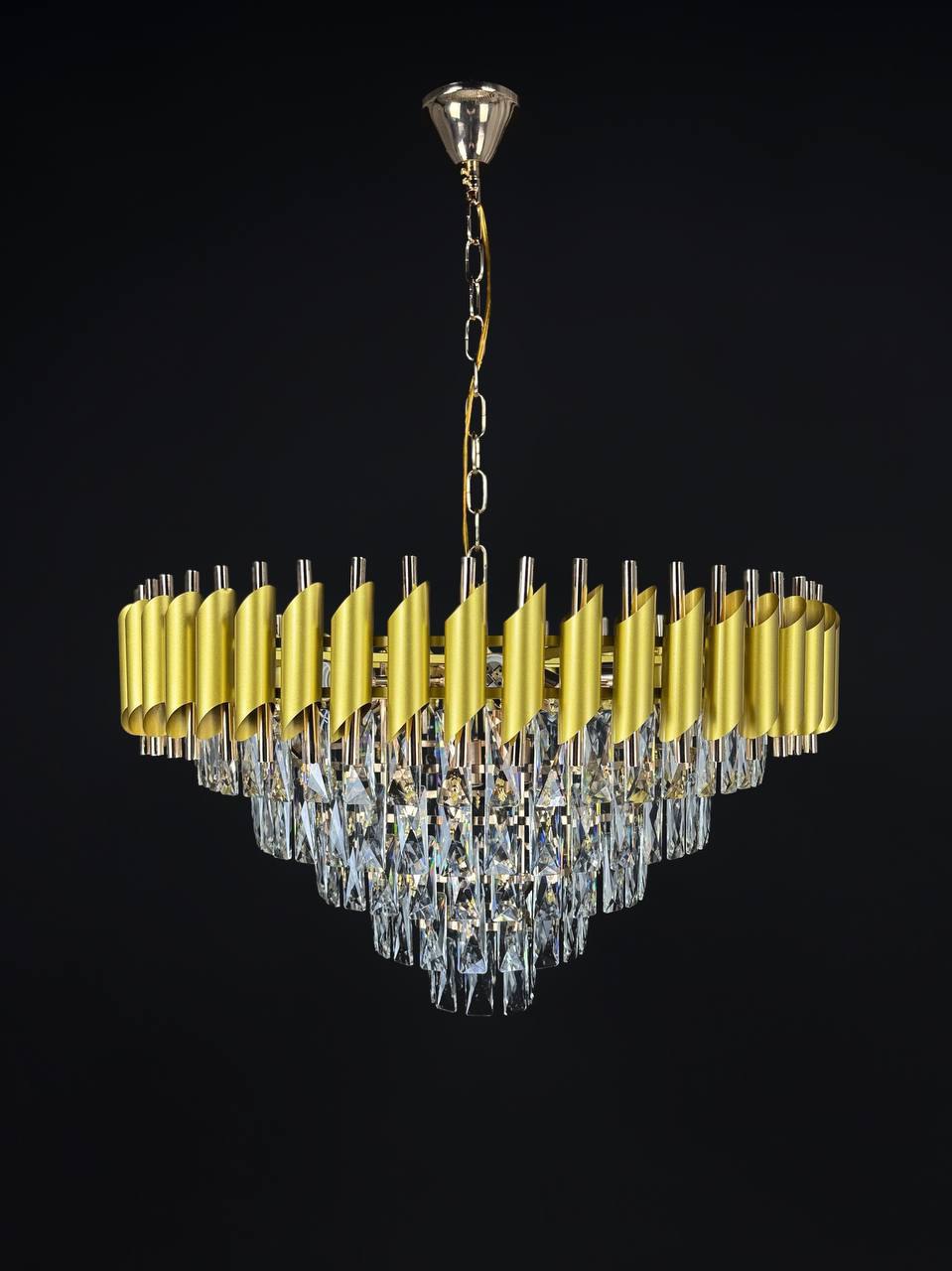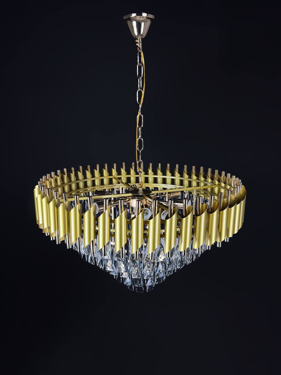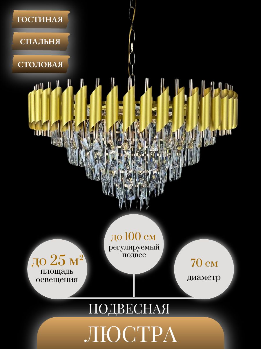 Подвесная люстра Lanbos - это современное и стильное решение для освещения различных помещений. Она выполнена в золотом цвете, что придает ей роскошный и элегантный вид.