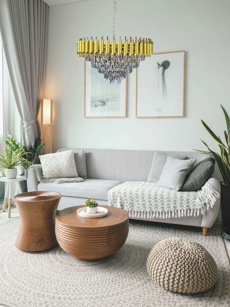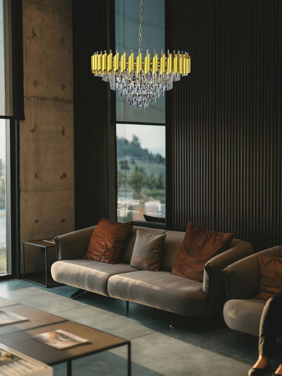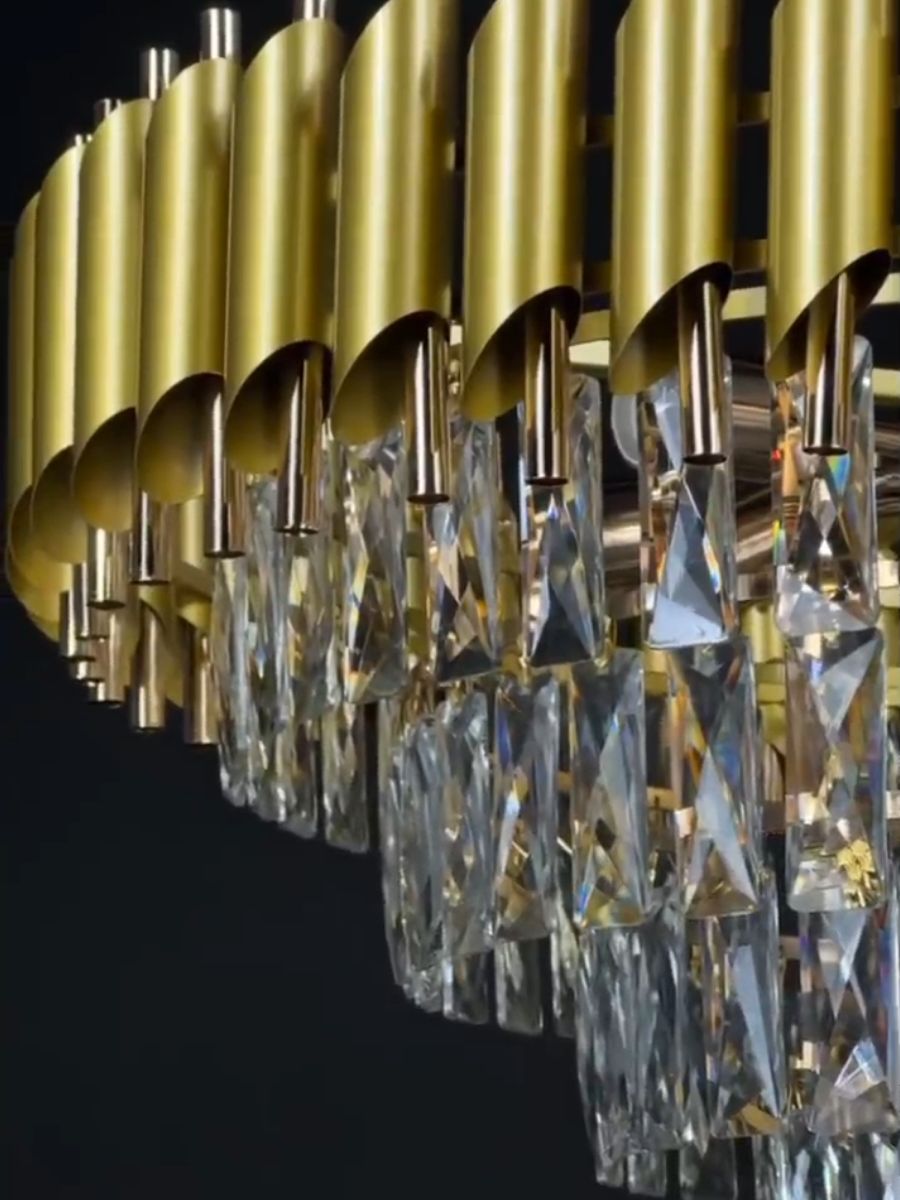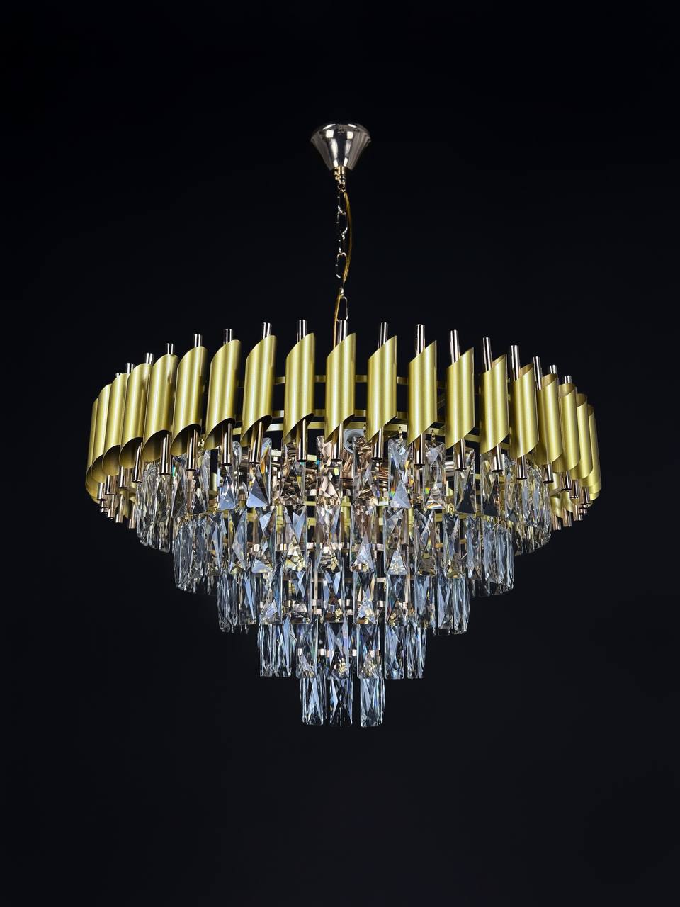 Подвесная люстра Lanbos - это современное и стильное решение для освещения различных помещений. Она выполнена в золотом цвете, что придает ей роскошный и элегантный вид.