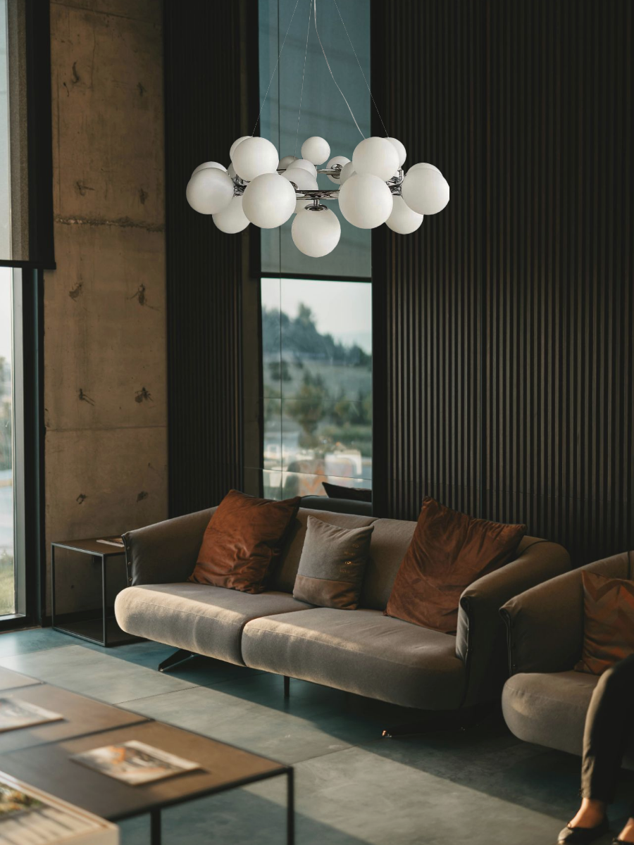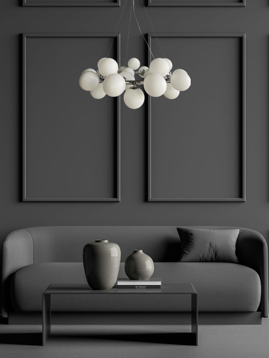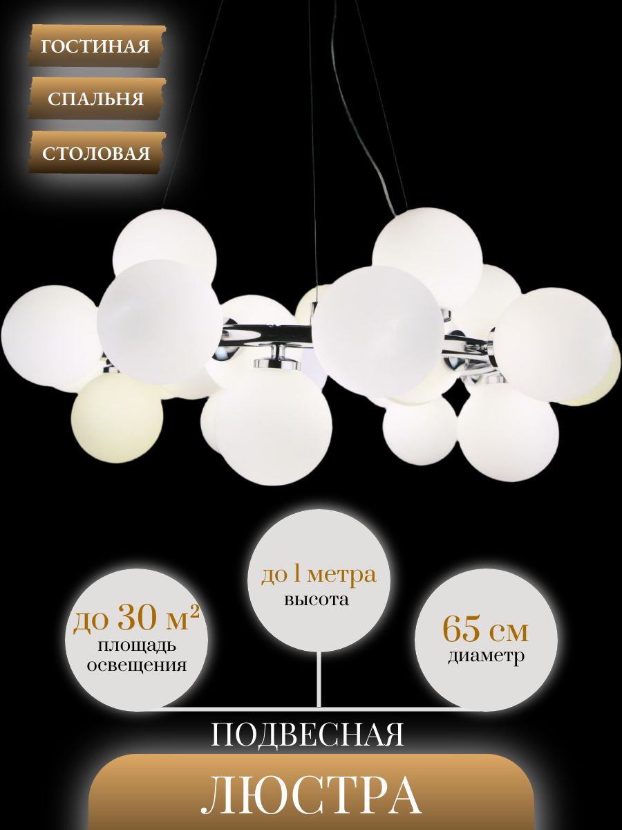 Придайте вашему интерьеру новый уровень стиля и элегантности с подвесной люстрой Lanbos . Эта дизайнерская люстра, выполненная в цвете хром, станет изюминкой любого помещения. Белые матовые плафоны в форме шаров создают мягкое и уютное освещение, идеально подходящее для гостиной, спальни или столовой. С максимальной мощностью в 175 Вт от 25ти светодиодных ламп и площадью освещения до 30 кв.м., она обеспечит достаточный свет даже в самых больших пространствах.