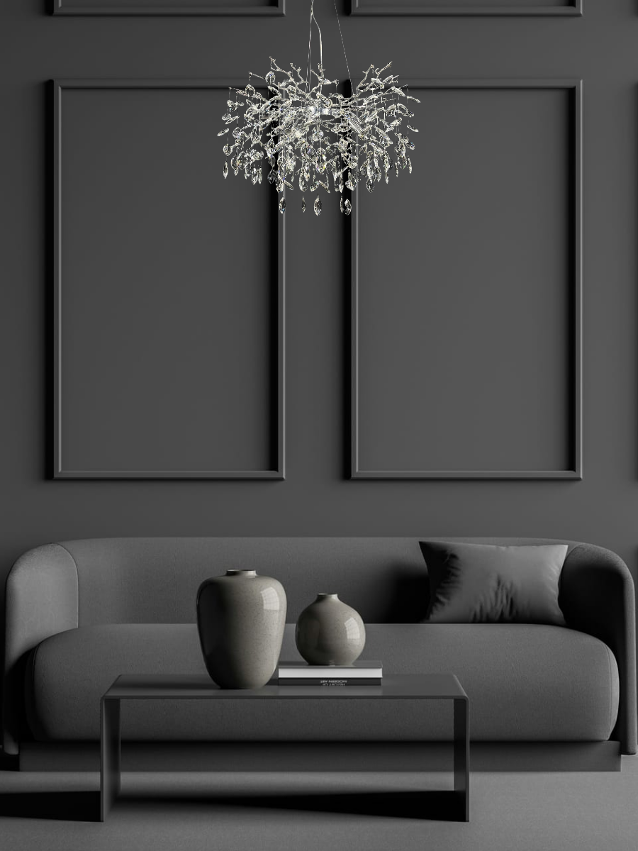 Дизайн и качество: Люстра изготовлена из хромированной стали, что обеспечивает ей долгий срок службы и защиту от влаги и пыли. Круглый дизайн и возможность регулировки по высоте позволяют установить ее как для высоких, так и для низких потолков.