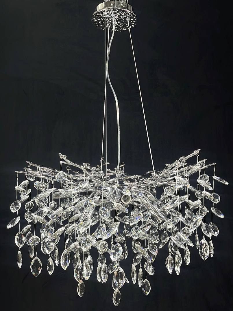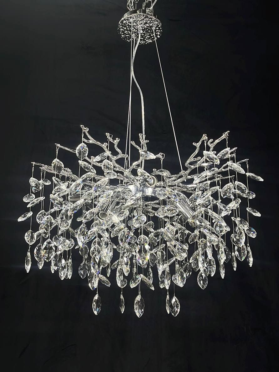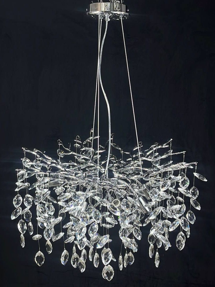 Освещение: Люстра оснащается 8 светодиодными лампами, которые обеспечивают яркий и равномерный свет. Совокупная мощность ламп составляет до 320 Вт, что делает эту люстру подходящей для больших помещений.