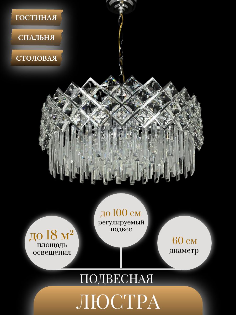 Люстра оснащается 9 лампами Е14, что обеспечивает яркое и равномерное освещение на площади до 18 кв. м. Мощность каждой лампы составляет до 40 Вт, а общая мощность люстры - до 360 Вт.