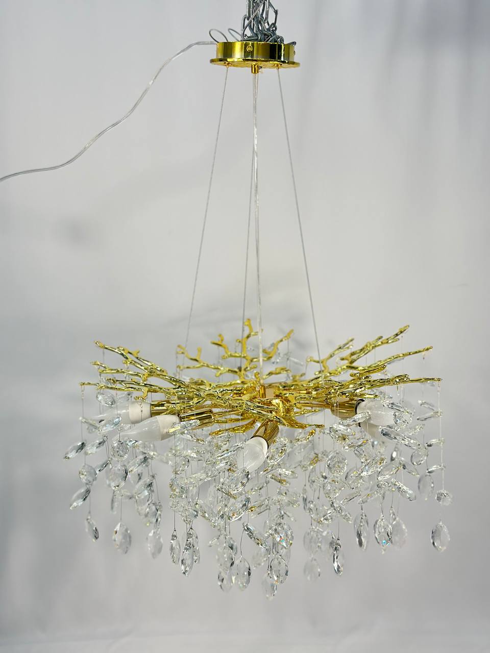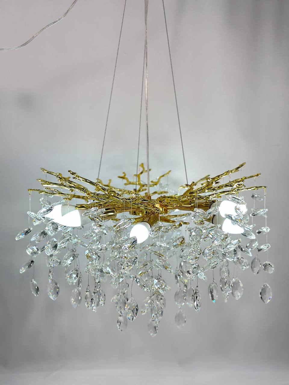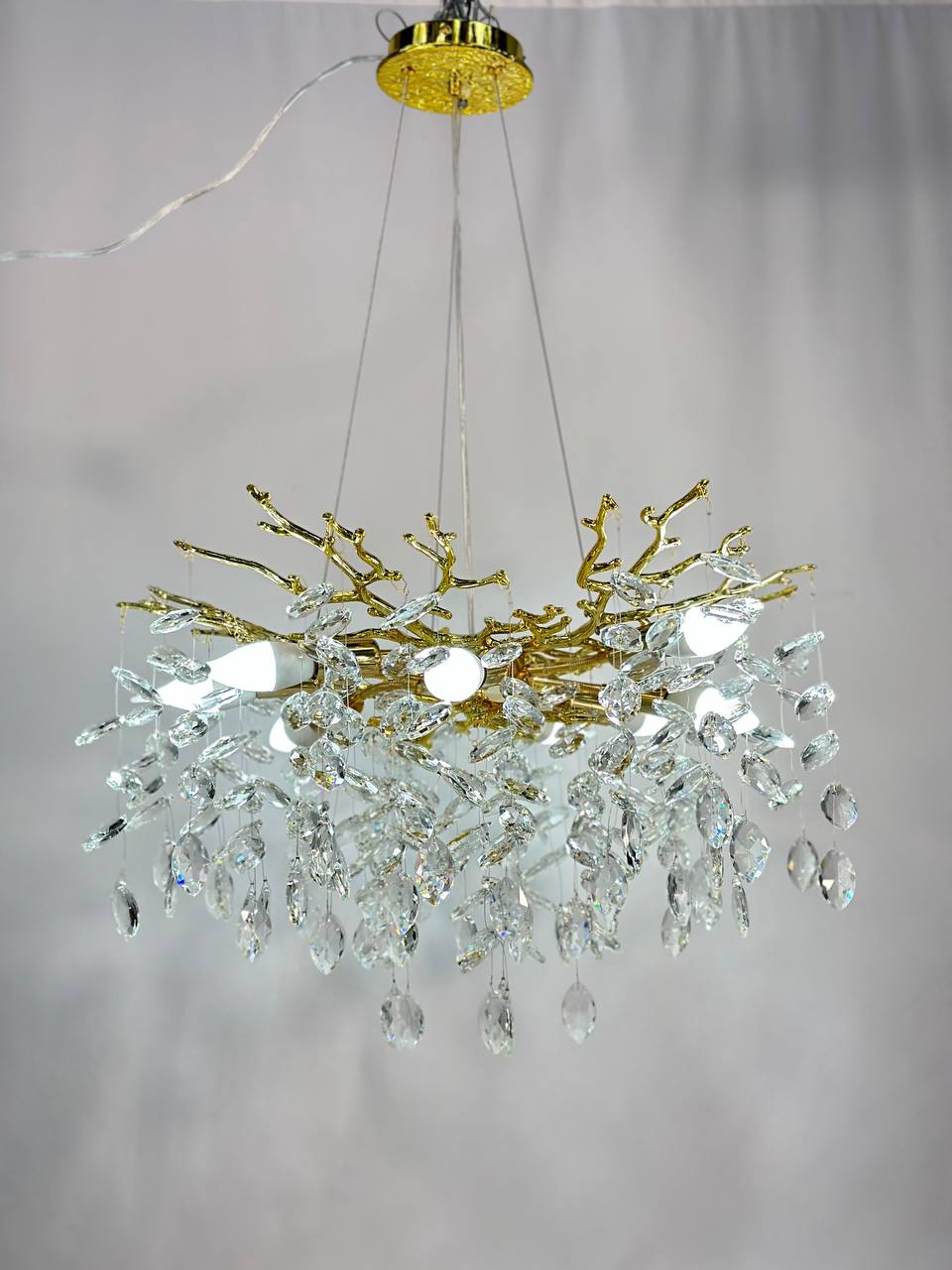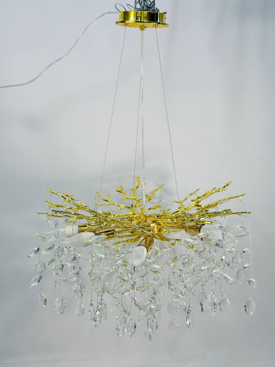 Люстра подвесная Lanbos 98040-600-G4-8J имеет золотой цвет, который придает ей особенный блеск и красоту. Работает от обычного механического выключателя, что делает ее удобной и простой в использовании.
