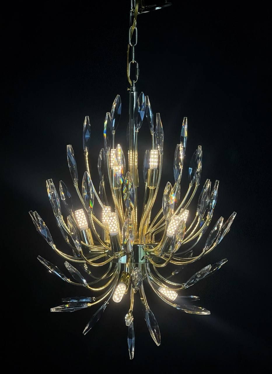 Люстра оснащается 12 светодиодными лампами G9, что обеспечивает яркое и равномерное освещение. Мощность каждой лампы составляет до 9 Вт, а общая мощность люстры - до 108 Вт. Это позволяет осветить площадь до 30 кв. м.