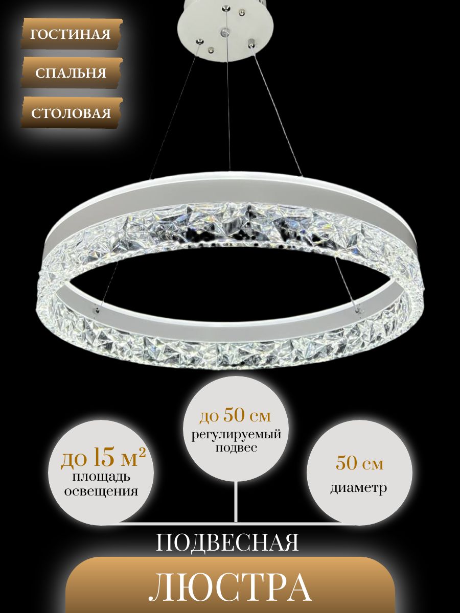 Люстра оснащена встроенным светодиодами (LED) мощностью 62 Вт, что обеспечивает яркое и равномерное освещение площади до 15 кв. м.