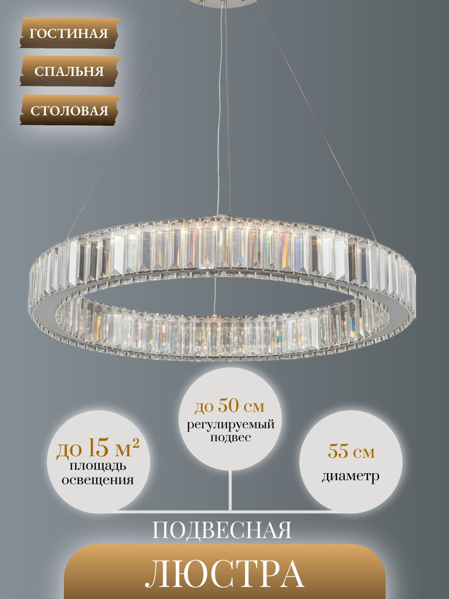 Люстра подвесная светодиодная Lanbos - стильное и функциональное решение для освещения различных помещений. Люстра оснащена светодиодными лампами мощностью 55 Вт, что обеспечивает яркое и равномерное освещение площади до 15 кв. м. Управление осуществляется механическим способом, а тип цоколя - встроенный светодиодный светильник (LED). Напряжение составляет 220 В, что делает ее подходящей для использования в большинстве домашних и коммерческих помещений. Степень пылевлагозащиты IP20 обеспечивает защиту от пыли и влаги, что делает люстру долговечной и надежной в эксплуатации. Крепление осуществляется на планку, что гарантирует устойчивость и безопасность использования. Особенности данной модели включают прозрачный плафон из стекла, регулировку по высоте и крепление в комплекте. Цвет арматуры - серебристый, что позволяет гармонично вписать люстру в любой интерьер. Люстра поставляется в картонной коробке, что обеспечивает безопасность при транспортировке. В комплект входят крепежные элементы, паспорт и лампочки, что позволяет сразу же начать использование после распаковки. Выбирая люстру подвесную светодиодную Lanbos, вы получаете стильное, функциональное и надежное освещение для вашего дома или офиса.