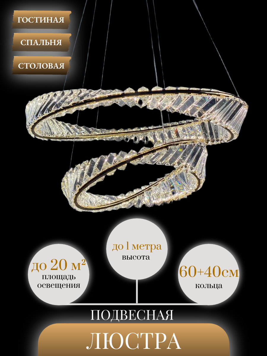 Люстра подвесная светодиодная Lanbos QS.99057-600+400 J – это элегантное и функциональное решение для создания комфортной атмосферы в вашем доме или офисе.