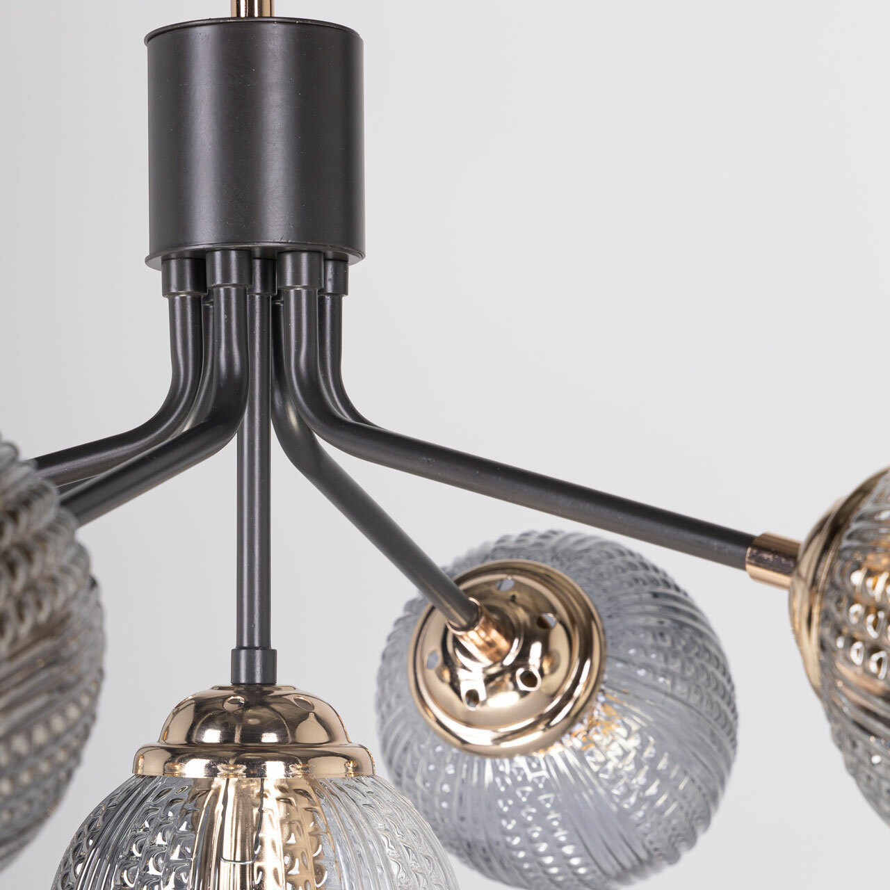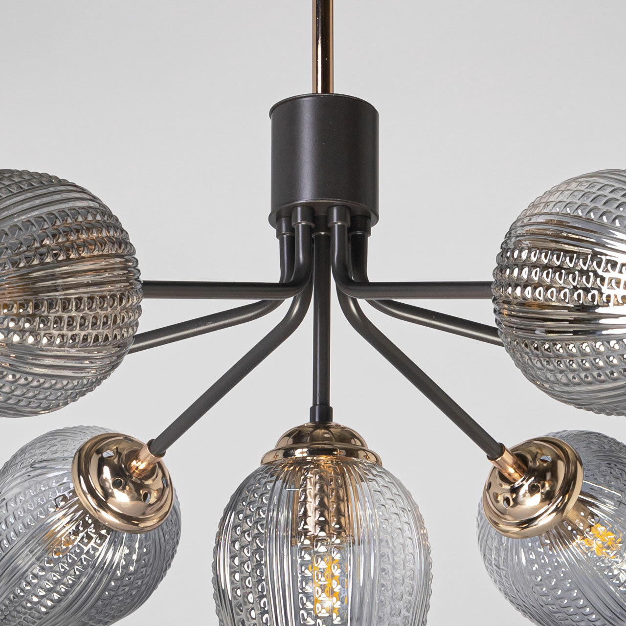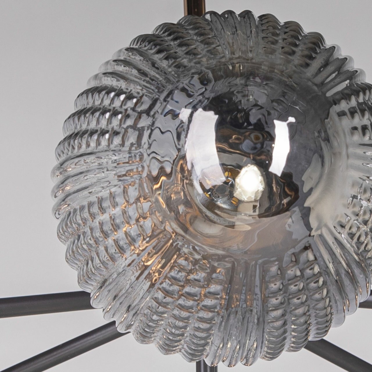 Если вы делаете ставку на неординарные решения в интерьере, обратите внимание на люстру De City Клэр 463012307. Эта модель выполнена в сдержанной цветовой гамме, которая подойдет под любую обстановку. Кофейное основание выигрышно сочетается с золотистыми декоративными элементами и плафонами из дымчатого металлизированного стекла, которые лучами отходят от центральной оси и равномерно рассеивают световой поток. При этом потолочный светильник высотой в 51 см позволяет максимально сохранить свободное пространство и подходит для комнат со стандартными и высокими потолками.