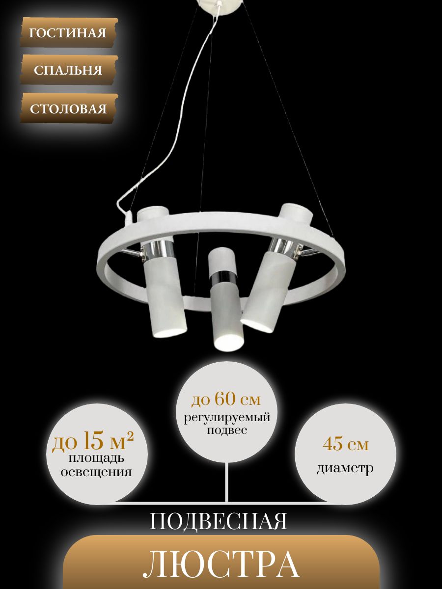 Светильник подвесной светодиодный Lanbos - это современное и стильное решение для освещения различных помещений. Он выполнен в белом цвете и имеет круглую форму, что делает его подходящим для различных интерьеров, включая лофт, минимализм и современный стиль. Lanbos оснащен 6 светодиодными лампами GU10, которые обеспечивают яркое и равномерное освещение. Мощность каждой лампы составляет до 10 Вт, что позволяет осветить площадь до 15 кв. м. Светильник имеет механическое управление и работает от сети 220 В. Степень пылевлагозащиты IP20 обеспечивает защиту от пыли и влаги. Lanbos крепится на потолок с помощью планки, что обеспечивает надежное и прочное крепление. Длина подвеса составляет 60 см, что позволяет регулировать высоту светильника в зависимости от ваших предпочтений. В комплекте с светильником идут крепежные элементы и паспорт. Светильник подвесной светодиодный Lanbos произведен в Китае и имеет гарантию на 1 год.