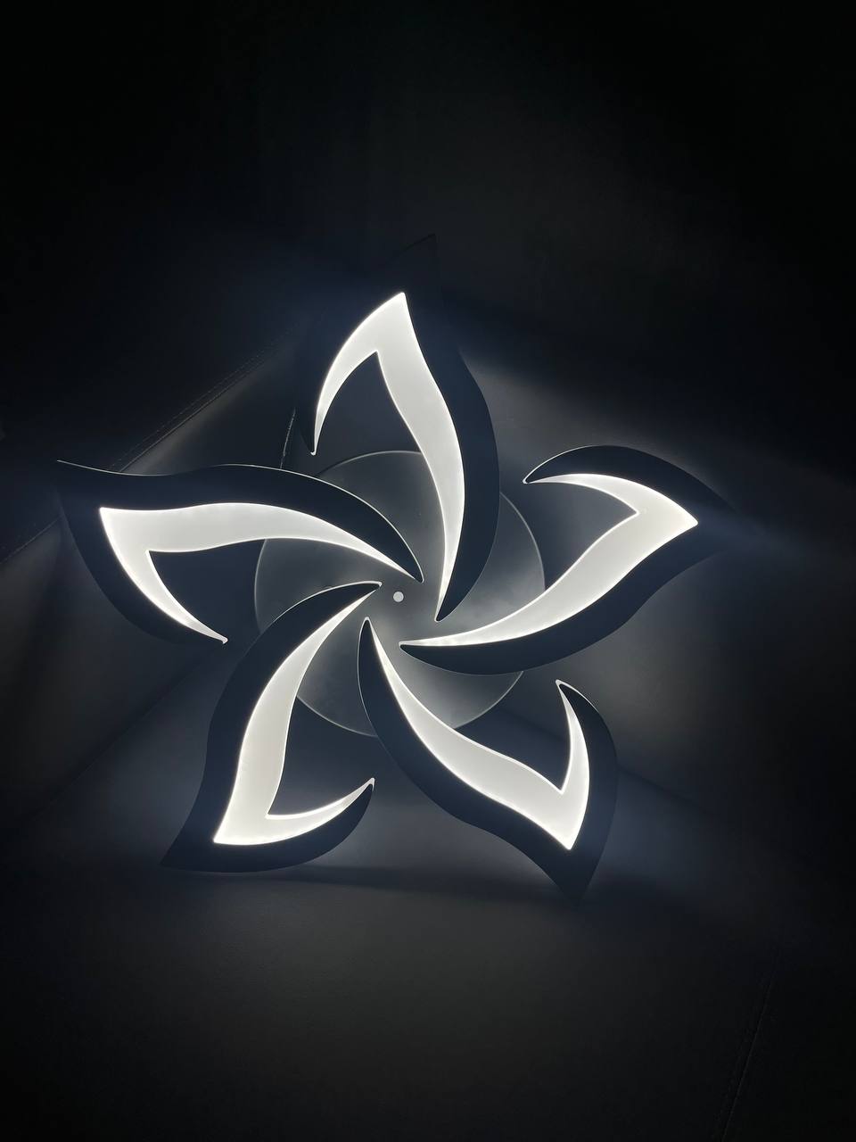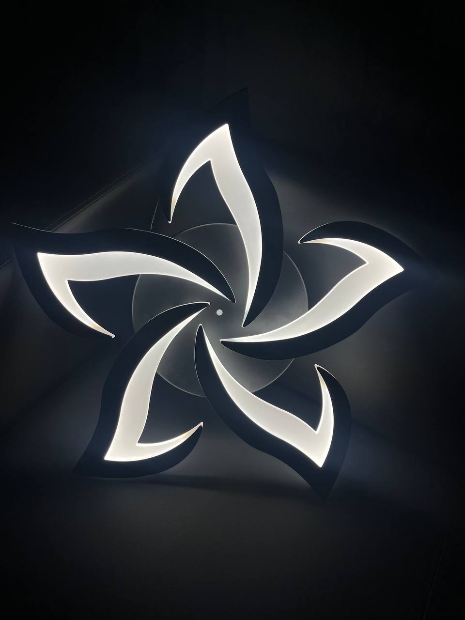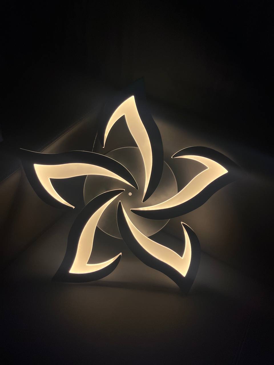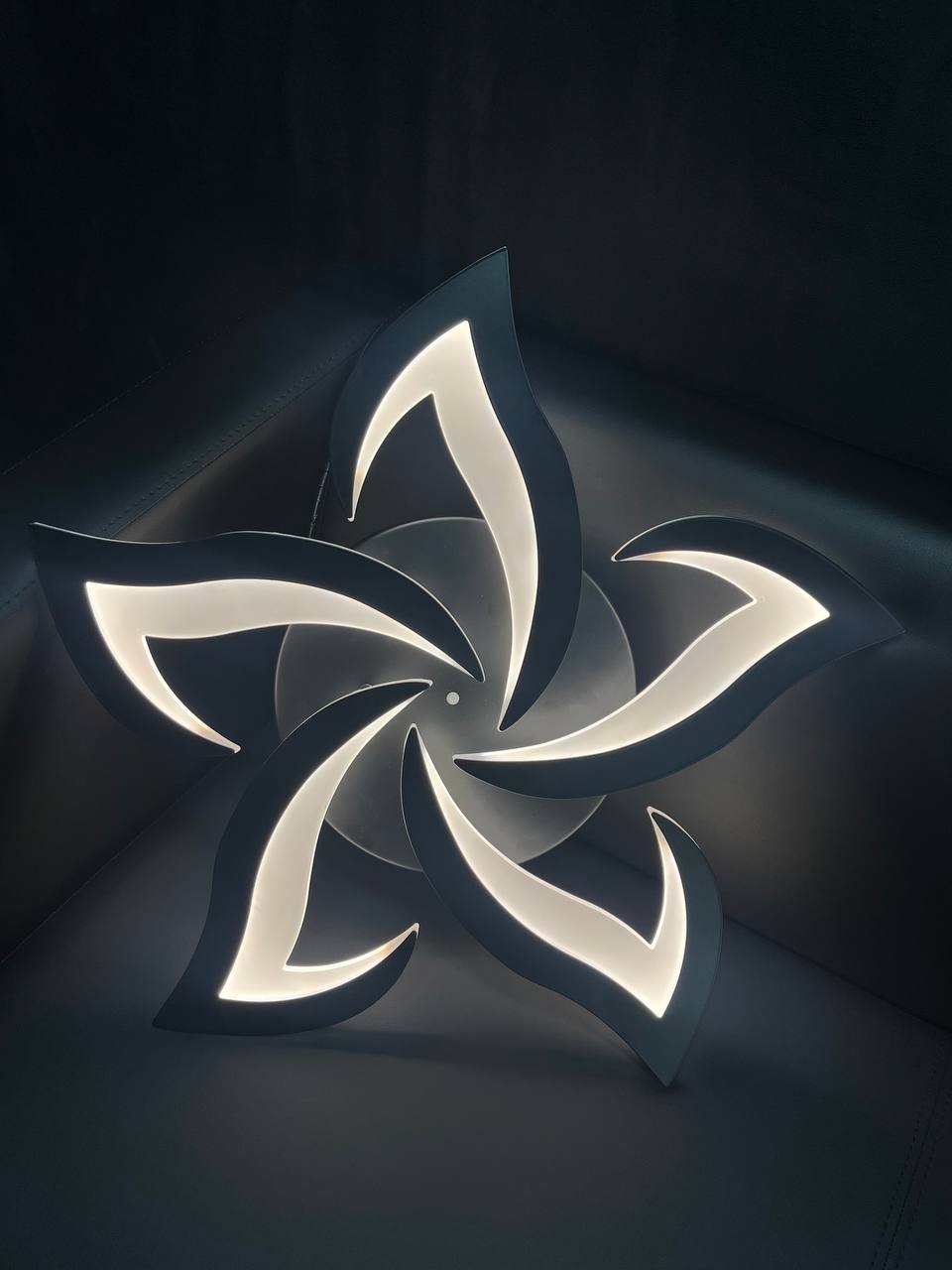 Светильник LANBOS имеет нестандартные формы и размеры: длина - 55 см, ширина - 55 см, высота - 7,5 см, вес - 1,5 кг.